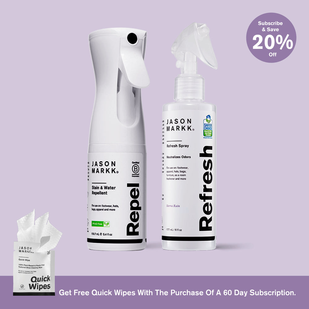 Meet the Repel & Refresh Bundle—your go-to duo for keeping your shoes protected and smelling fresh, all day, every day. Whether you're new to premium shoe care or simply leveling up your routine, this bundle delivers effortless maintenance powered by our most trusted essentials.