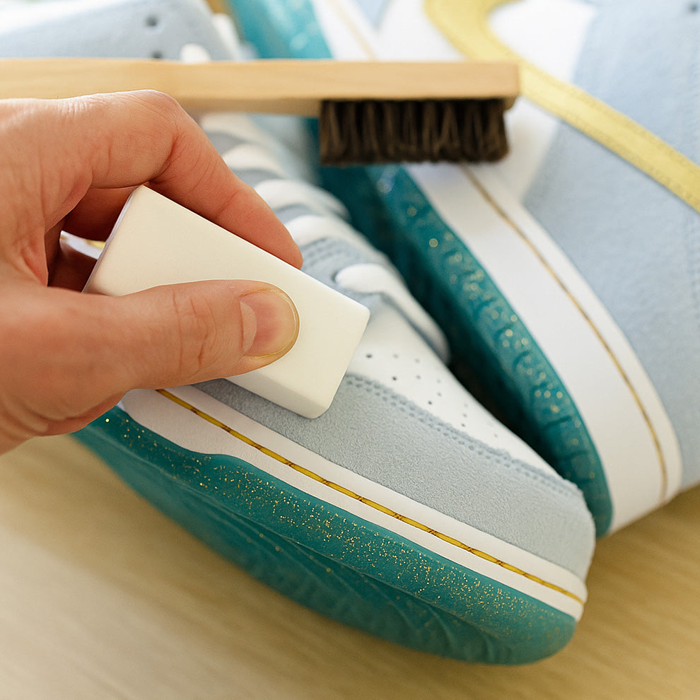 For the most part, you can clean nubuck the same way you would suede. For both materials, the Suede Cleaning Kit is an excellent choice. Its gentle brush and eraser work well on both suede and nubuck, removing dirt without damaging delicate surfaces.